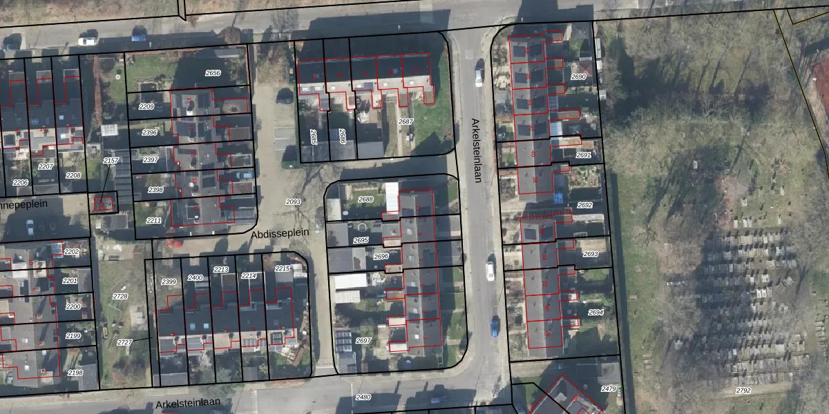 Gebruik de zoekbalk of klik op een perceel voor informatie over de adressen binnen dit perceel.