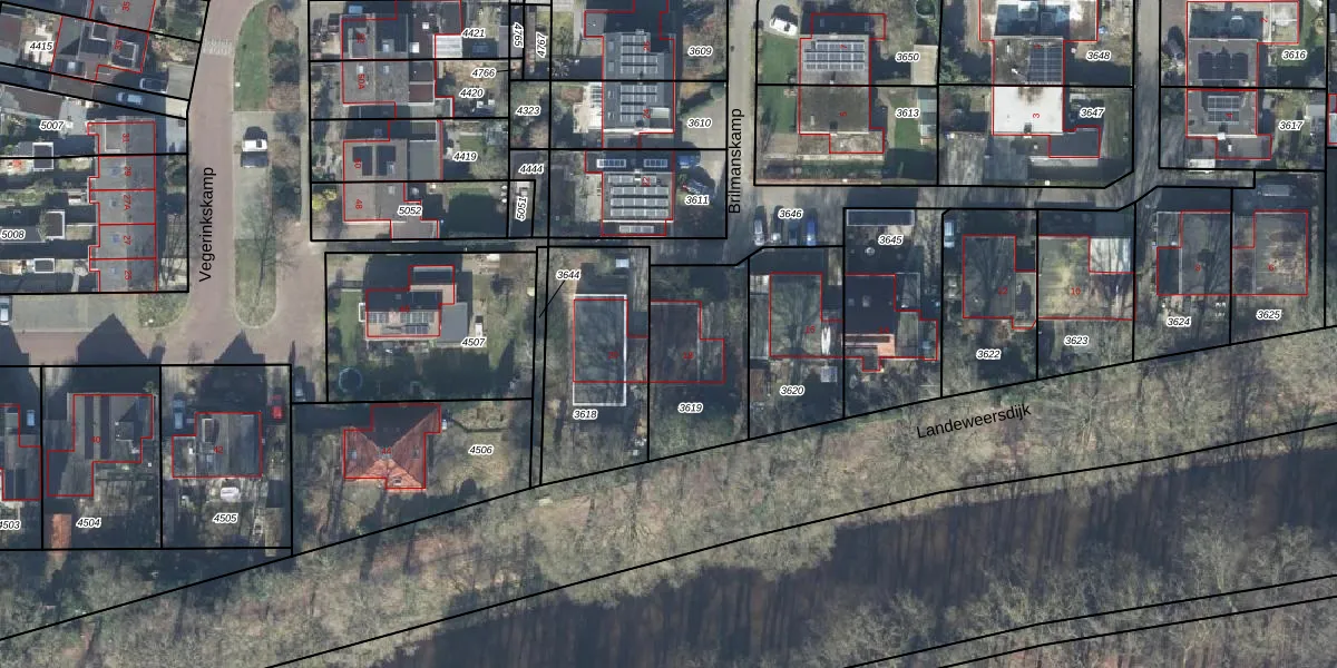 Het perceel waarop Brilmanskamp 18 staat heeft een oppervlakte van 404 m². Dit is een groot perceel. De perceeloppervlakte wordt geregistreerd door het Kadaster. Gedetailleerde informatie over de maten van dit perceel kunt u vinden in het rapport Kadastrale kaart met maatvoering van Brilmanskamp 18.