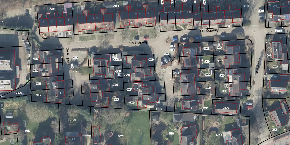 Het perceel waarop De Kuiperij 27 staat heeft een oppervlakte van 216 m². Dit is een middelgroot perceel. De perceeloppervlakte wordt geregistreerd door het Kadaster. Gedetailleerde informatie over de maten van dit perceel kunt u vinden in het rapport Kadastrale kaart met maatvoering van De Kuiperij 27.