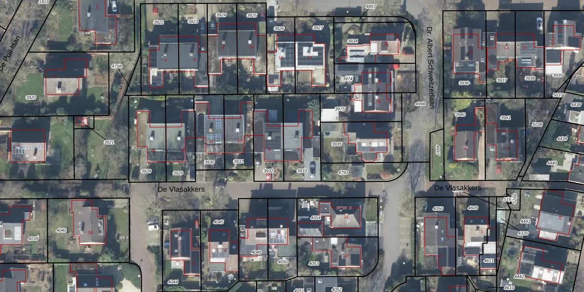 Gebruik de zoekbalk of klik op een perceel voor informatie over de adressen binnen dit perceel.