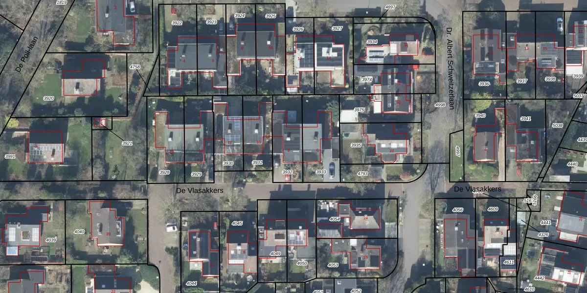 Het perceel waarop De Vlasakkers 8 staat heeft een oppervlakte van 302 m². Dit is een groot perceel. De perceeloppervlakte wordt geregistreerd door het Kadaster. Gedetailleerde informatie over de maten van dit perceel kunt u vinden in het rapport Kadastrale kaart met maatvoering van De Vlasakkers 8.
