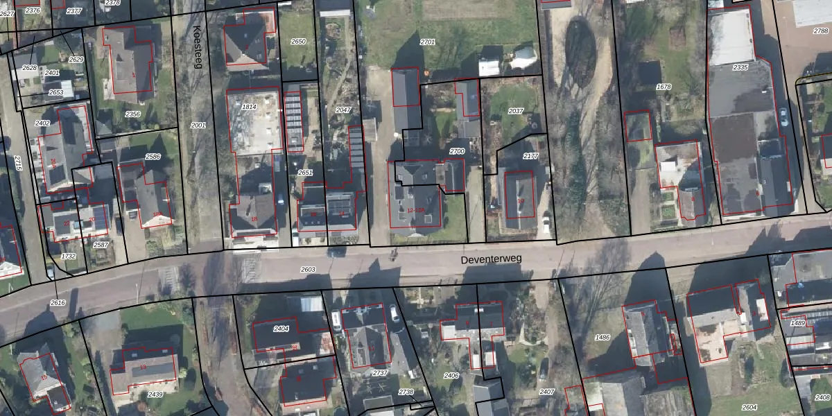 Deventerweg 12 is gelegen op kadastraal perceel BMN02C2701. Deze kadastrale aanduiding is uniek en wordt gebruikt door het Kadaster om eigendomsrechten en andere zakelijke rechten vast te leggen. Het perceel maakt onderdeel uit van de kadastrale gemeente Bathmen.