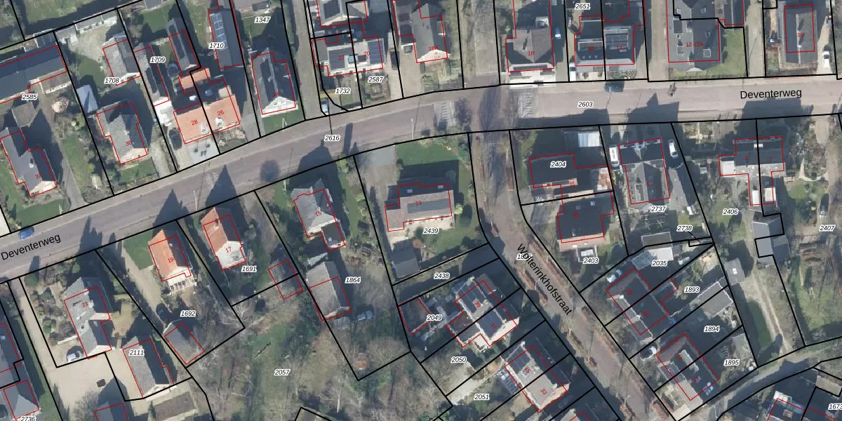 Het perceel waarop Deventerweg 13 staat heeft een oppervlakte van 769 m². Dit is een groot perceel. De perceeloppervlakte wordt geregistreerd door het Kadaster. Gedetailleerde informatie over de maten van dit perceel kunt u vinden in het rapport Kadastrale kaart met maatvoering van Deventerweg 13.