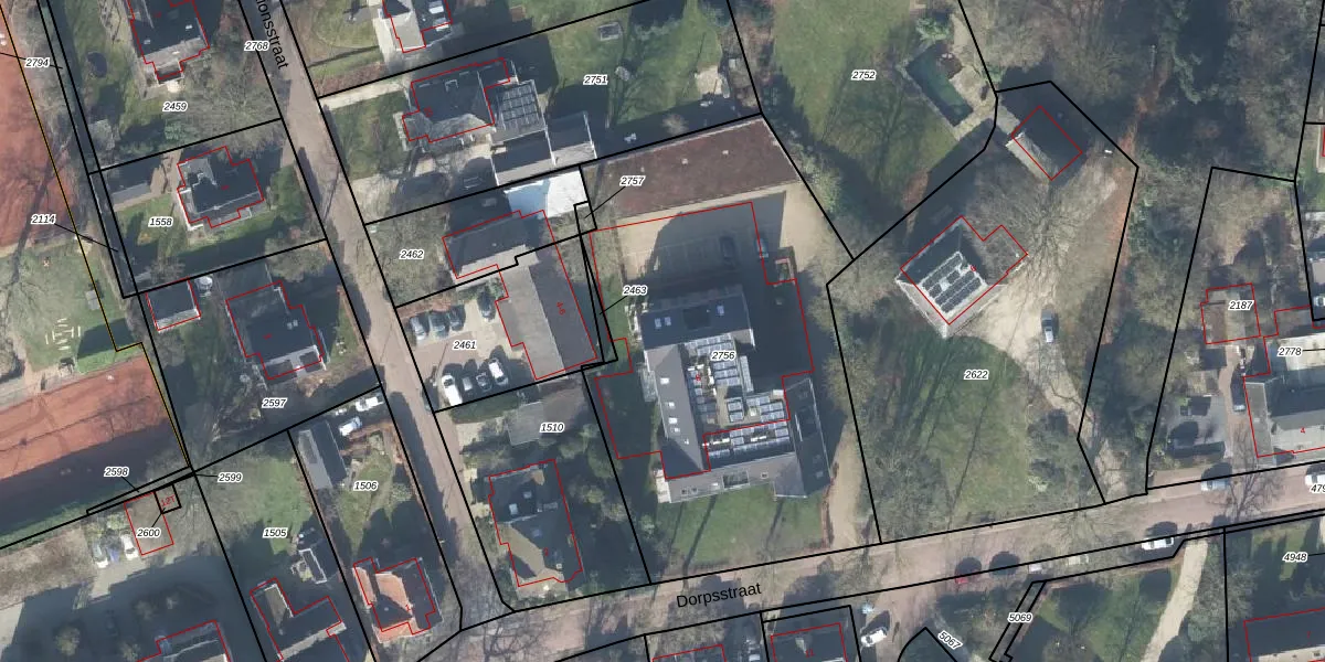 Het perceel waarop Dorpsstraat 8-H staat heeft een oppervlakte van 2276 m². Dit is een zeer groot perceel. De perceeloppervlakte wordt geregistreerd door het Kadaster. Gedetailleerde informatie over de maten van dit perceel kunt u vinden in het rapport Kadastrale kaart met maatvoering van Dorpsstraat 8-H.