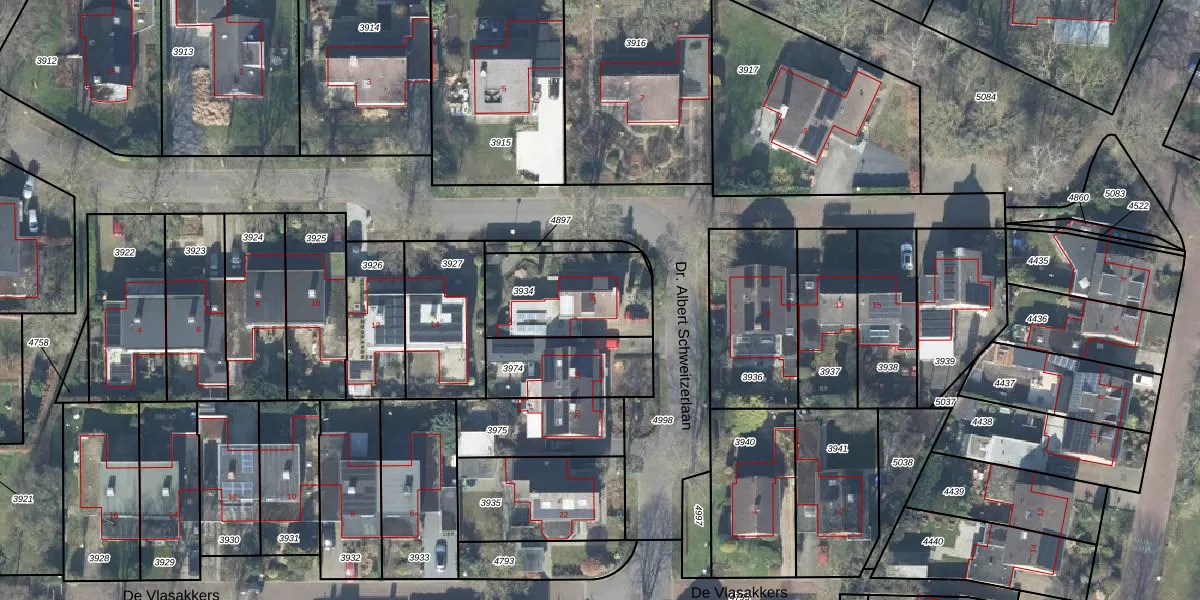 Dr. Albert Schweitzerlaan 16 is gelegen op kadastraal perceel BMN02A3934. Deze kadastrale aanduiding is uniek en wordt gebruikt door het Kadaster om eigendomsrechten en andere zakelijke rechten vast te leggen. Het perceel maakt onderdeel uit van de kadastrale gemeente Bathmen.