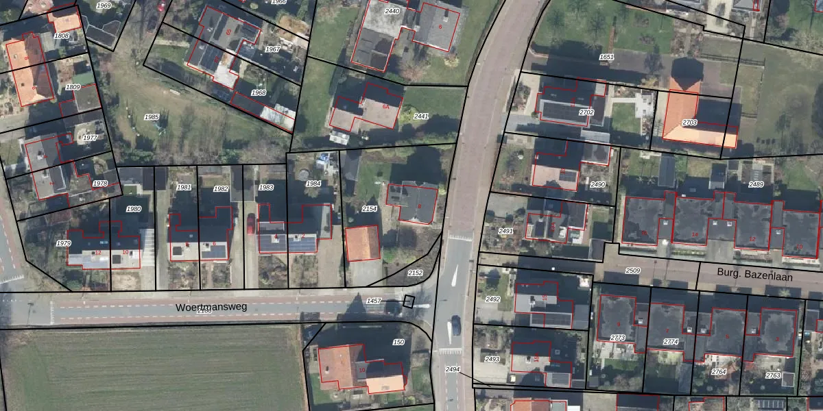 Gebruik de zoekbalk of klik op een perceel voor informatie over de adressen binnen dit perceel.