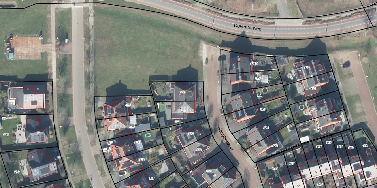 Het adres ligt op het perceel BMN02-L-522, dat zich in de kadastrale gemeente Bathmen bevindt. Het perceel is 290 m² groot. Dat is kleiner dan de gemiddelde perceeloppervlakte in Bathmen, dat op 6197,79 m² ligt. De grootste perceeloppervlakte in de kadastrale gemeente is 31,5 ha. De kleinste oppervlakte bedraagt 0 m². Op het perceel bevinden zich geen andere adressen. In de Basisregistratie Kadaster (BRK) werden de grenzen van het perceel geregistreerd op 18-02-2010.