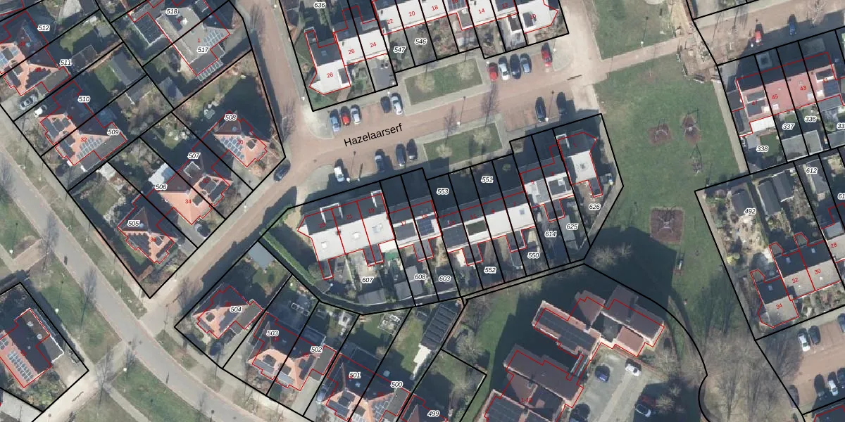 Het perceel waarop Hazelaarserf 15 staat heeft een oppervlakte van 169 m². Dit is een middelgroot perceel. De perceeloppervlakte wordt geregistreerd door het Kadaster. Gedetailleerde informatie over de maten van dit perceel kunt u vinden in het rapport Kadastrale kaart met maatvoering van Hazelaarserf 15.
