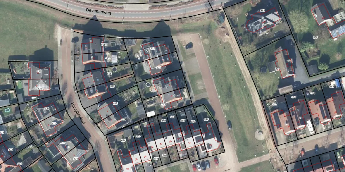 Het adres ligt op het perceel BMN02-L-530, dat zich in de kadastrale gemeente Bathmen bevindt. Het perceel is 292 m² groot. Dat is kleiner dan de gemiddelde perceeloppervlakte in Bathmen, dat op 6197,79 m² ligt. De grootste perceeloppervlakte in de kadastrale gemeente is 31,5 ha. De kleinste oppervlakte bedraagt 0 m². Dit is het enige adres dat aanwezig is op het perceel. De huidige grenzen van het perceel zijn digitaal in de Basisregistratie Kadaster (BRK) geregistreerd op 18-02-2010.