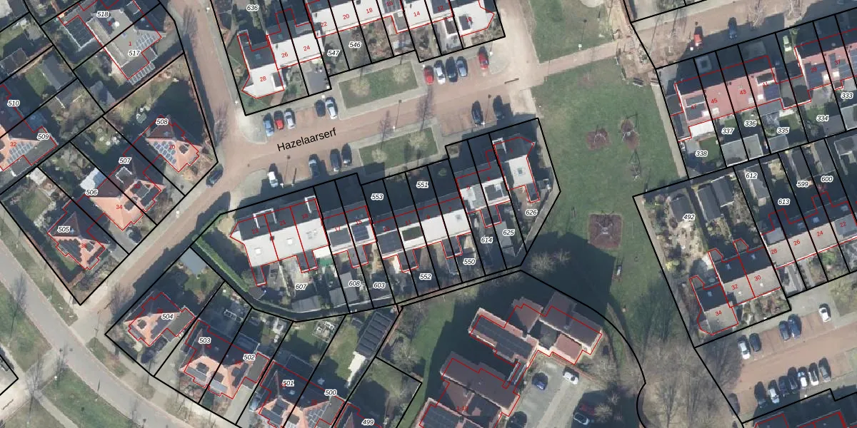 Het perceel waarop Hazelaarserf 9 staat heeft een oppervlakte van 155 m². Dit is een middelgroot perceel. De perceeloppervlakte wordt geregistreerd door het Kadaster. Gedetailleerde informatie over de maten van dit perceel kunt u vinden in het rapport Kadastrale kaart met maatvoering van Hazelaarserf 9.