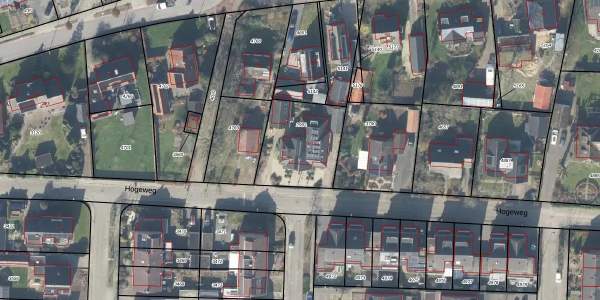 Het perceel waarop Hogeweg 1 staat heeft een oppervlakte van 730 m². Dit is een groot perceel. De perceeloppervlakte wordt geregistreerd door het Kadaster. Gedetailleerde informatie over de maten van dit perceel kunt u vinden in het rapport Kadastrale kaart met maatvoering van Hogeweg 1.