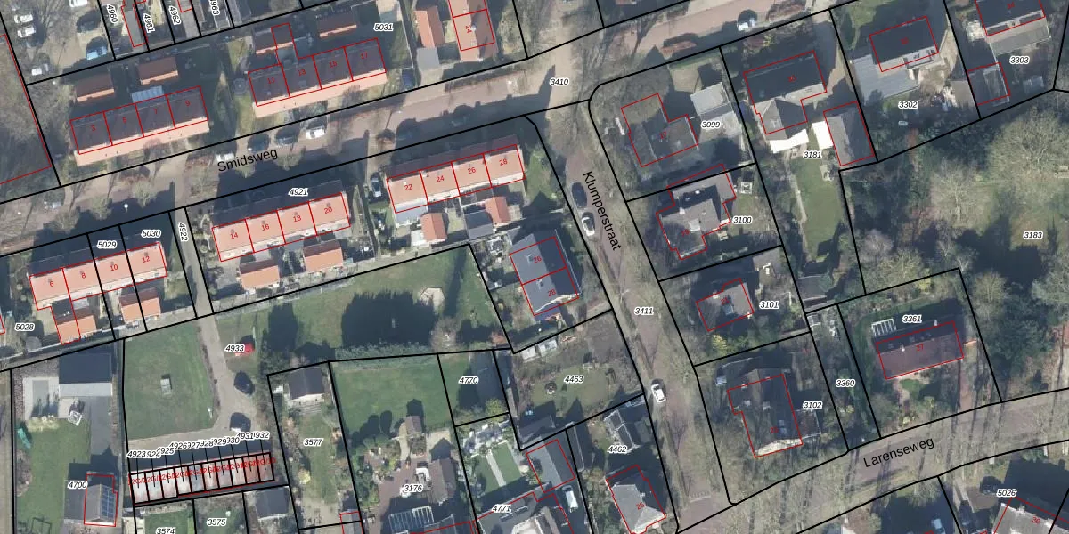 Het perceel waarop Klumperstraat 26 staat heeft een oppervlakte van 1795 m². Dit is een zeer groot perceel. De perceeloppervlakte wordt geregistreerd door het Kadaster. Gedetailleerde informatie over de maten van dit perceel kunt u vinden in het rapport Kadastrale kaart met maatvoering van Klumperstraat 26.