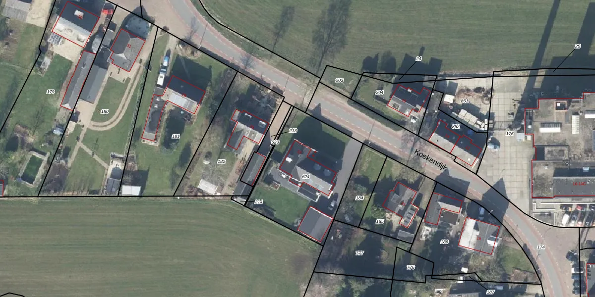 Het perceel waarop Koekendijk 23 staat heeft een oppervlakte van 1040 m². Dit is een zeer groot perceel. De perceeloppervlakte wordt geregistreerd door het Kadaster. Gedetailleerde informatie over de maten van dit perceel kunt u vinden in het rapport Kadastrale kaart met maatvoering van Koekendijk 23.