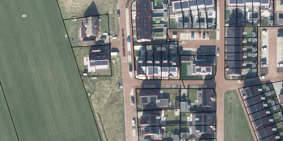 Gebruik de zoekbalk of klik op een perceel voor informatie over de adressen binnen dit perceel.