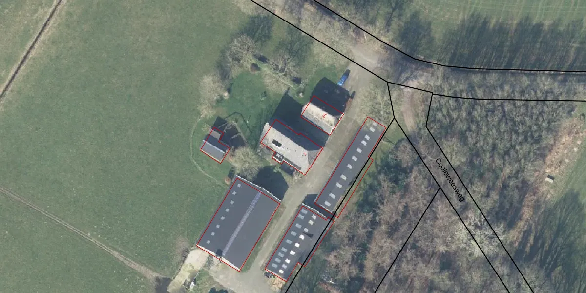 Het perceel waarop Leemkuilsweg 2-A staat heeft een oppervlakte van 3,8 ha. Dit is een zeer groot perceel. De perceeloppervlakte wordt geregistreerd door het Kadaster. Gedetailleerde informatie over de maten van dit perceel kunt u vinden in het rapport Kadastrale kaart met maatvoering van Leemkuilsweg 2-A.