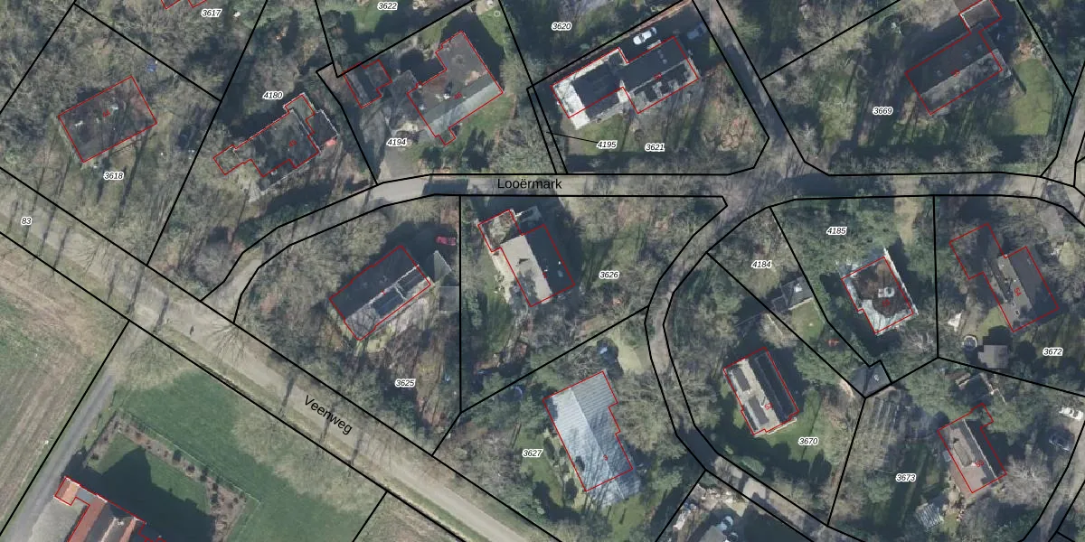 Het perceel waarop Looërmark 2 staat heeft een oppervlakte van 1165 m². Dit is een zeer groot perceel. De perceeloppervlakte wordt geregistreerd door het Kadaster. Gedetailleerde informatie over de maten van dit perceel kunt u vinden in het rapport Kadastrale kaart met maatvoering van Looërmark 2.