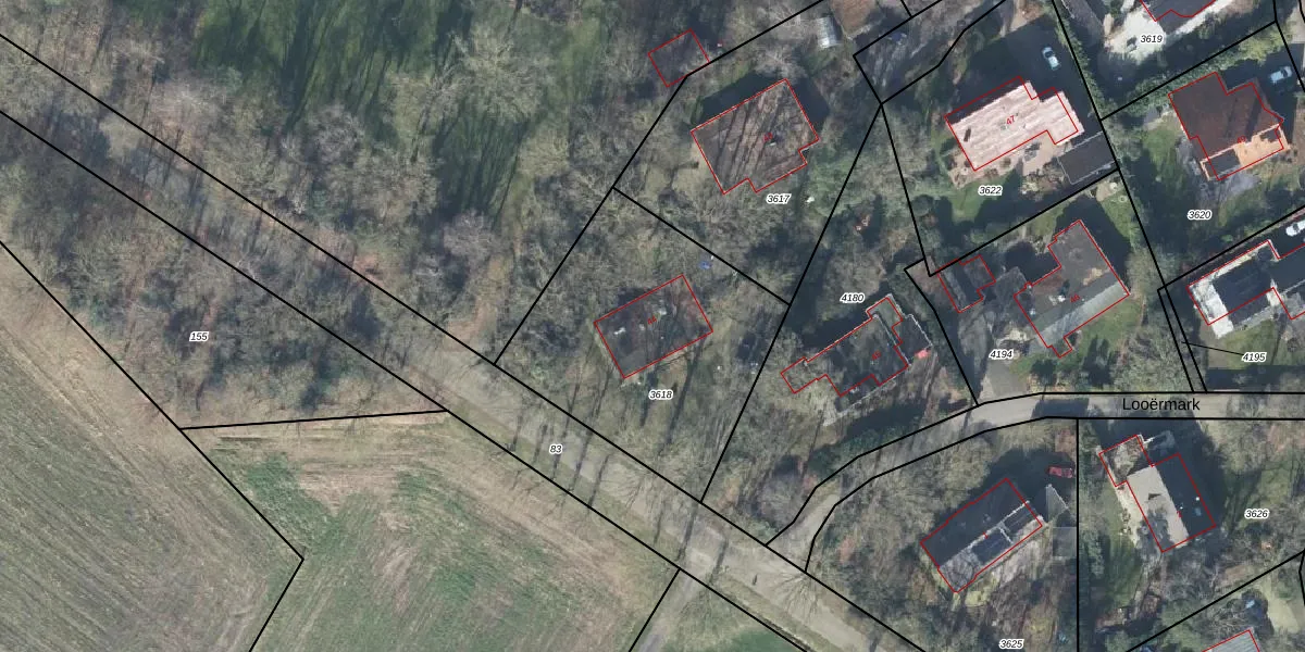 Het perceel waarop Looërmark 44 staat heeft een oppervlakte van 1169 m². Dit is een zeer groot perceel. De perceeloppervlakte wordt geregistreerd door het Kadaster. Gedetailleerde informatie over de maten van dit perceel kunt u vinden in het rapport Kadastrale kaart met maatvoering van Looërmark 44.