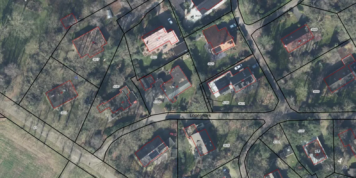 Het perceel waarop Looërmark 46 staat heeft een oppervlakte van 949 m². Dit is een groot perceel. De perceeloppervlakte wordt geregistreerd door het Kadaster. Gedetailleerde informatie over de maten van dit perceel kunt u vinden in het rapport Kadastrale kaart met maatvoering van Looërmark 46.