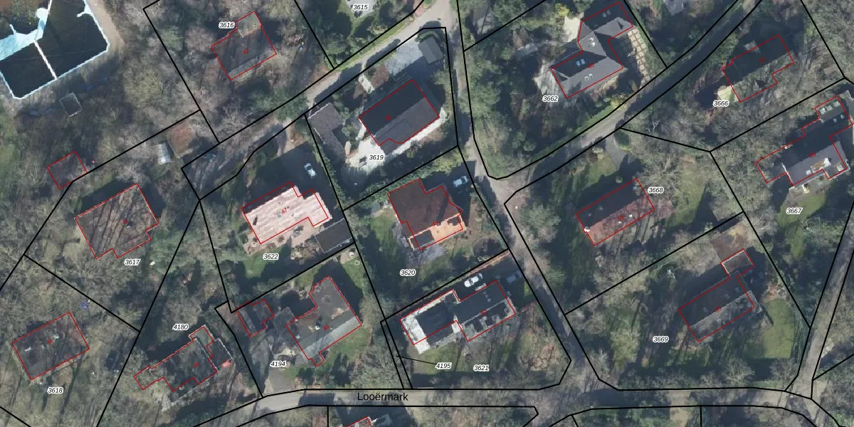 Het perceel waarop Looërmark 49 staat heeft een oppervlakte van 858 m². Dit is een groot perceel. De perceeloppervlakte wordt geregistreerd door het Kadaster. Gedetailleerde informatie over de maten van dit perceel kunt u vinden in het rapport Kadastrale kaart met maatvoering van Looërmark 49.