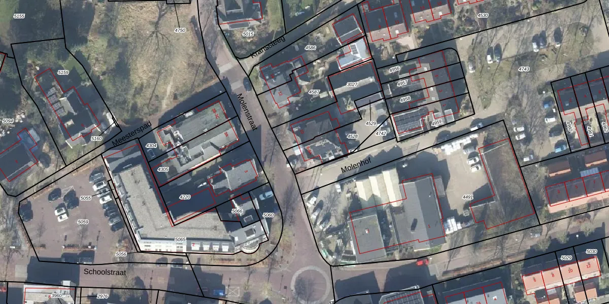 Het perceel waarop Molenstraat 8 staat heeft een oppervlakte van 318 m². Dit is een groot perceel. De perceeloppervlakte wordt geregistreerd door het Kadaster. Gedetailleerde informatie over de maten van dit perceel kunt u vinden in het rapport Kadastrale kaart met maatvoering van Molenstraat 8.