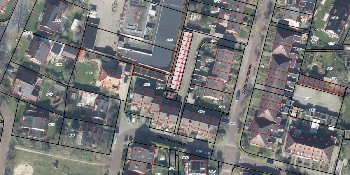 Noteboomstraat 14-G-13 is gelegen op kadastraal perceel BMN02A4781. Deze kadastrale aanduiding is uniek en wordt gebruikt door het Kadaster om eigendomsrechten en andere zakelijke rechten vast te leggen. Het perceel maakt onderdeel uit van de kadastrale gemeente Bathmen.