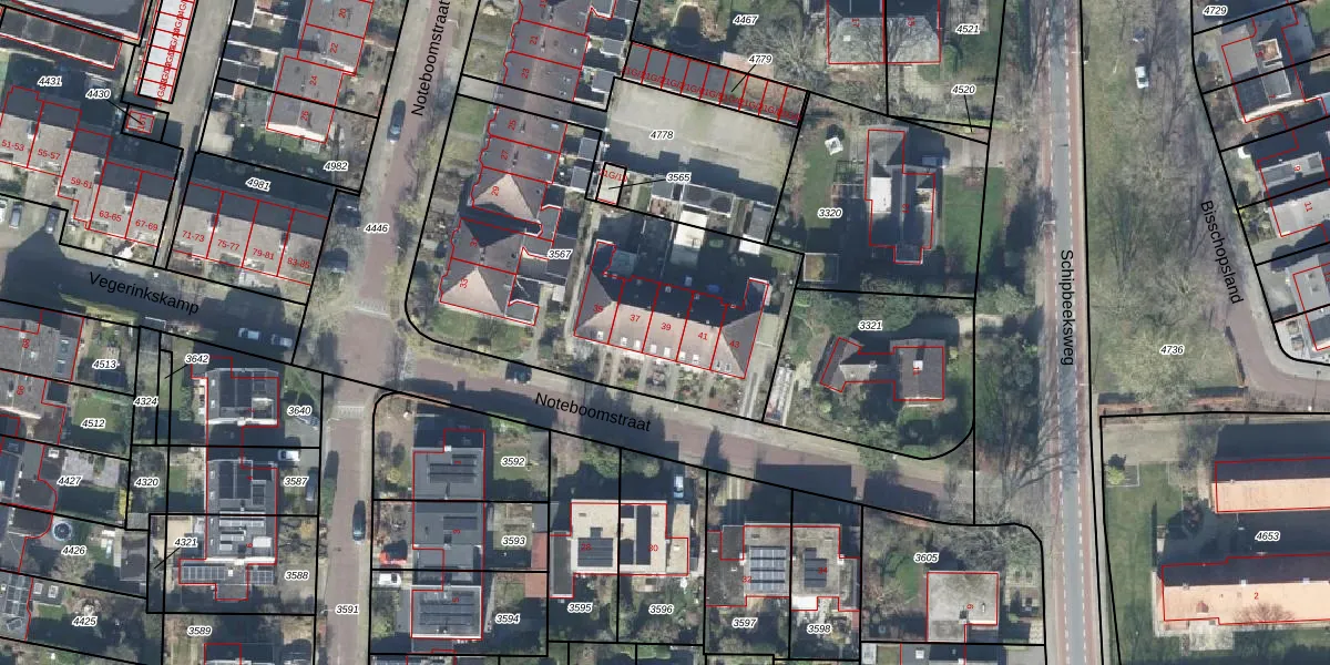 Noteboomstraat 39 is gelegen op kadastraal perceel BMN02A3567. Deze kadastrale aanduiding is uniek en wordt gebruikt door het Kadaster om eigendomsrechten en andere zakelijke rechten vast te leggen. Het perceel maakt onderdeel uit van de kadastrale gemeente Bathmen.