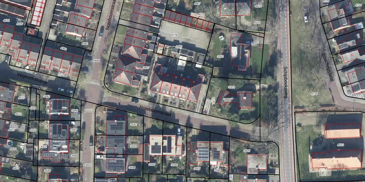 Noteboomstraat 41 is gelegen op kadastraal perceel BMN02A3567. Deze kadastrale aanduiding is uniek en wordt gebruikt door het Kadaster om eigendomsrechten en andere zakelijke rechten vast te leggen. Het perceel maakt onderdeel uit van de kadastrale gemeente Bathmen.