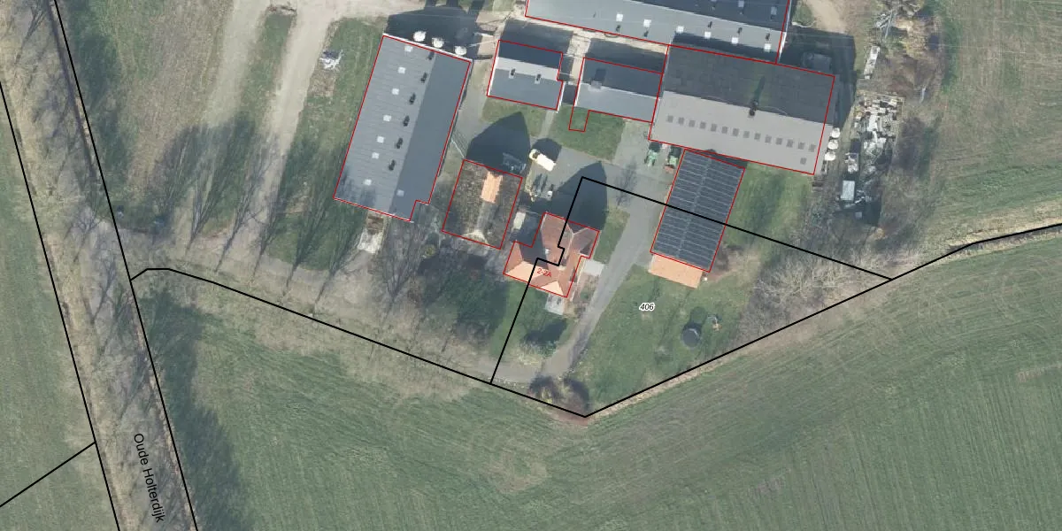 Het perceel waarop Oude Holterdijk 2 staat heeft een oppervlakte van 2,9 ha. Dit is een zeer groot perceel. De perceeloppervlakte wordt geregistreerd door het Kadaster. Gedetailleerde informatie over de maten van dit perceel kunt u vinden in het rapport Kadastrale kaart met maatvoering van Oude Holterdijk 2.