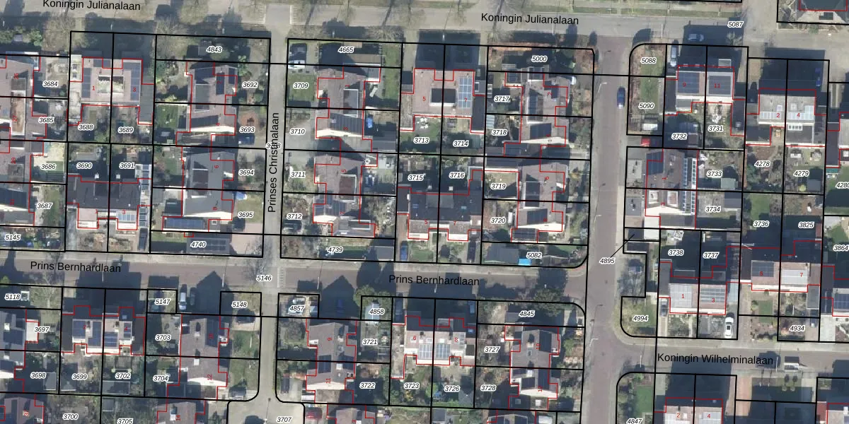 Prins Bernhardlaan 5 is gelegen op kadastraal perceel BMN02A3715. Deze kadastrale aanduiding is uniek en wordt gebruikt door het Kadaster om eigendomsrechten en andere zakelijke rechten vast te leggen. Het perceel maakt onderdeel uit van de kadastrale gemeente Bathmen.
