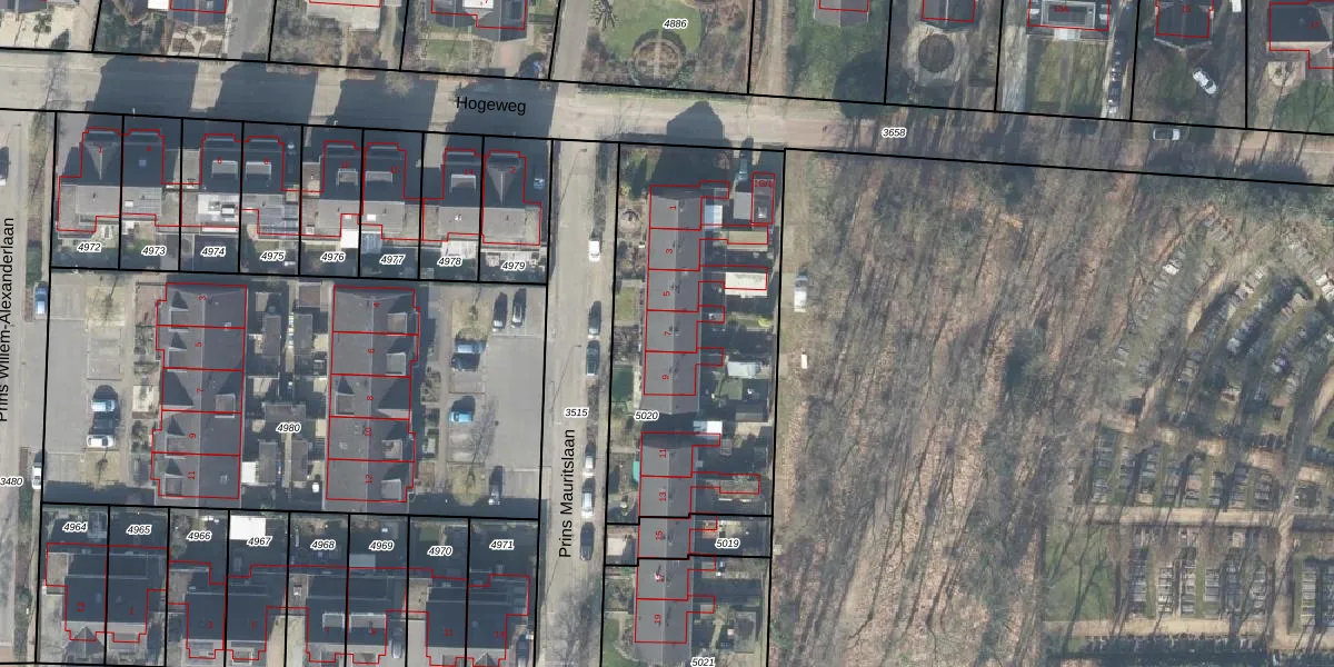 Het perceel waarop Prins Mauritslaan 7 staat heeft een oppervlakte van 1385 m². Dit is een zeer groot perceel. De perceeloppervlakte wordt geregistreerd door het Kadaster. Gedetailleerde informatie over de maten van dit perceel kunt u vinden in het rapport Kadastrale kaart met maatvoering van Prins Mauritslaan 7.