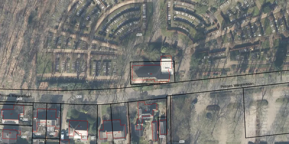 Het perceel waarop Prinses Margrietlaan 15 staat heeft een oppervlakte van 458 m². Dit is een groot perceel. De perceeloppervlakte wordt geregistreerd door het Kadaster. Gedetailleerde informatie over de maten van dit perceel kunt u vinden in het rapport Kadastrale kaart met maatvoering van Prinses Margrietlaan 15.