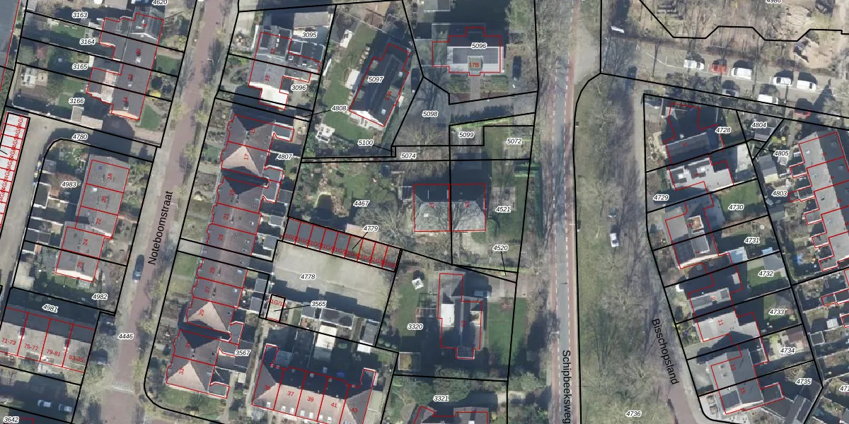 Gebruik de zoekbalk of klik op een perceel voor informatie over de adressen binnen dit perceel.