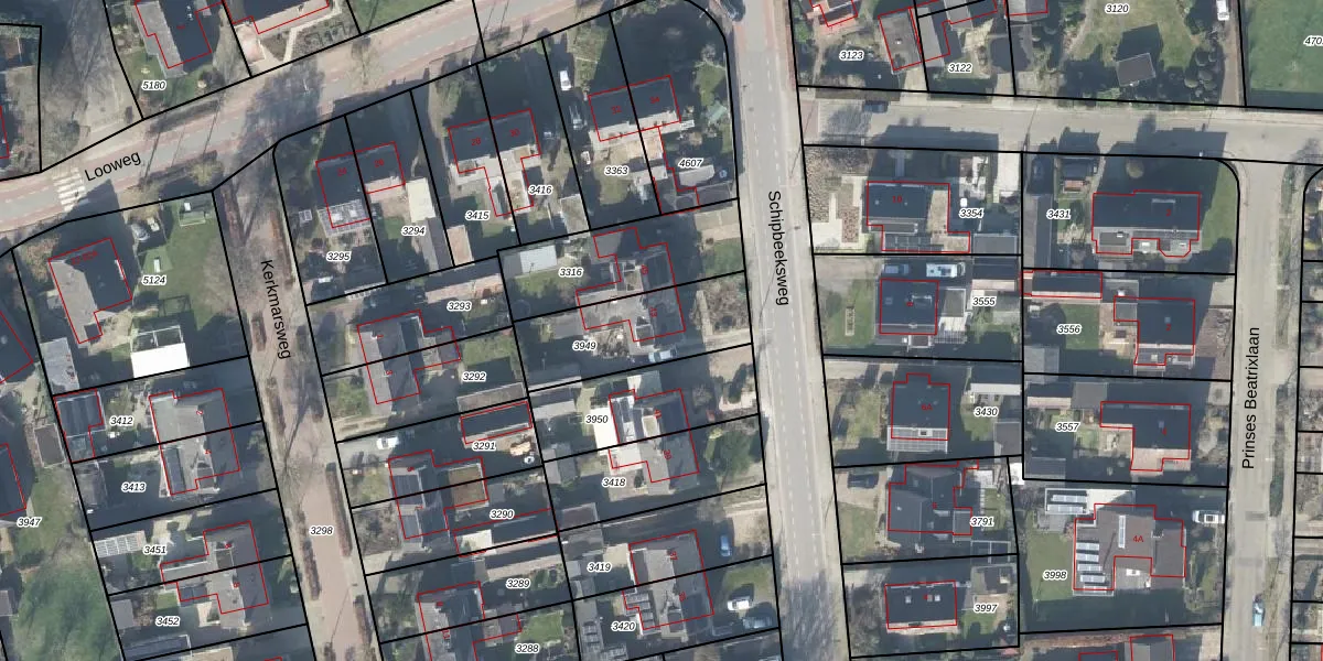 Het perceel waarop Schipbeeksweg 43 staat heeft een oppervlakte van 385 m². Dit is een groot perceel. De perceeloppervlakte wordt geregistreerd door het Kadaster. Gedetailleerde informatie over de maten van dit perceel kunt u vinden in het rapport Kadastrale kaart met maatvoering van Schipbeeksweg 43.