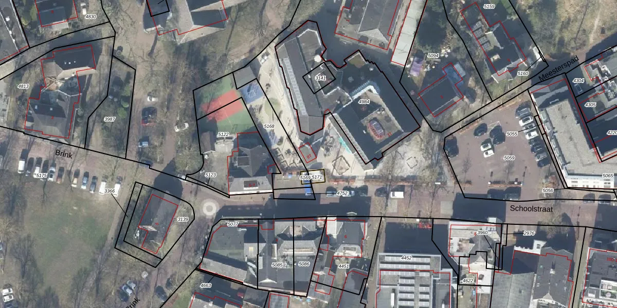Schoolstraat 9-T is gelegen op kadastraal perceel BMN02A5175. Deze kadastrale aanduiding is uniek en wordt gebruikt door het Kadaster om eigendomsrechten en andere zakelijke rechten vast te leggen. Het perceel maakt onderdeel uit van de kadastrale gemeente Bathmen.