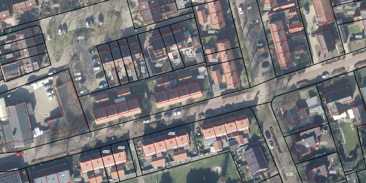 Het perceel waarop Smidsweg 15 staat heeft een oppervlakte van 1790 m². Dit is een zeer groot perceel. De perceeloppervlakte wordt geregistreerd door het Kadaster. Gedetailleerde informatie over de maten van dit perceel kunt u vinden in het rapport Kadastrale kaart met maatvoering van Smidsweg 15.