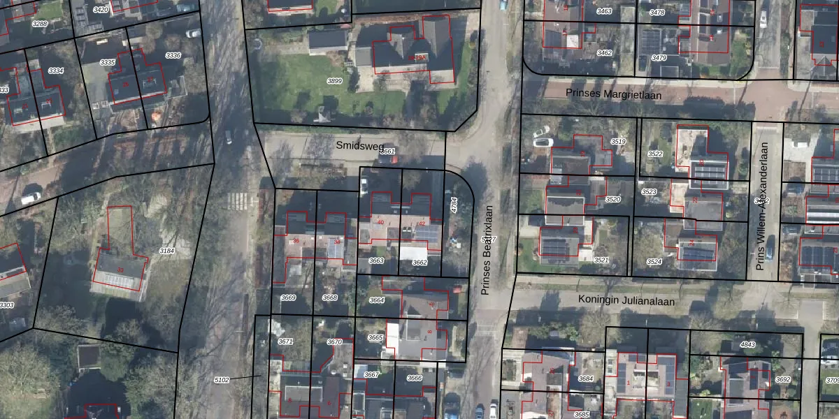 Het perceel waarop Smidsweg 42 staat heeft een oppervlakte van 258 m². Dit is een middelgroot perceel. De perceeloppervlakte wordt geregistreerd door het Kadaster. Gedetailleerde informatie over de maten van dit perceel kunt u vinden in het rapport Kadastrale kaart met maatvoering van Smidsweg 42.