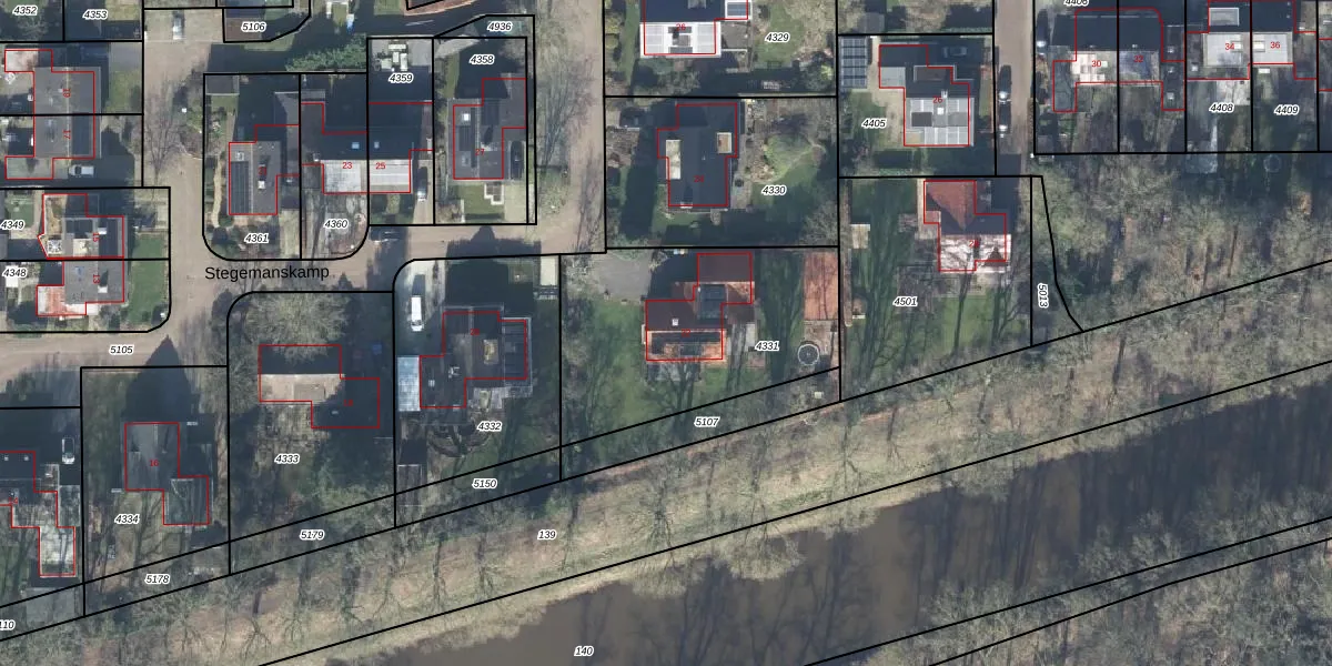 Het perceel waarop Stegemanskamp 22 staat heeft een oppervlakte van 1005 m². Dit is een zeer groot perceel. De perceeloppervlakte wordt geregistreerd door het Kadaster. Gedetailleerde informatie over de maten van dit perceel kunt u vinden in het rapport Kadastrale kaart met maatvoering van Stegemanskamp 22.
