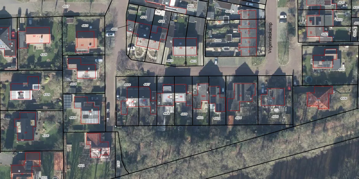Het perceel waarop Vegerinkskamp 36 staat heeft een oppervlakte van 273 m². Dit is een middelgroot perceel. De perceeloppervlakte wordt geregistreerd door het Kadaster. Gedetailleerde informatie over de maten van dit perceel kunt u vinden in het rapport Kadastrale kaart met maatvoering van Vegerinkskamp 36.