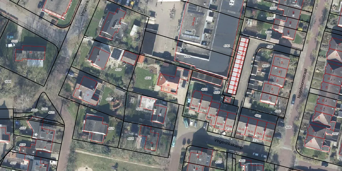Gebruik de zoekbalk of klik op een perceel voor informatie over de adressen binnen dit perceel.