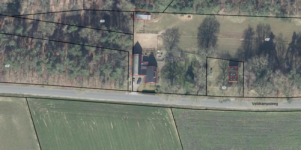 Het perceel waarop Veldkampsteeg 1 staat heeft een oppervlakte van 8075 m². Dit is een zeer groot perceel. De perceeloppervlakte wordt geregistreerd door het Kadaster. Gedetailleerde informatie over de maten van dit perceel kunt u vinden in het rapport Kadastrale kaart met maatvoering van Veldkampsteeg 1.