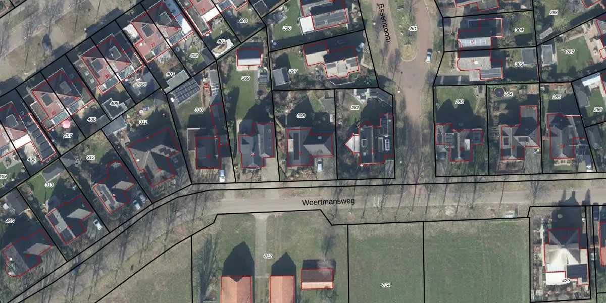 Het perceel waarop Woertmansweg 22 staat heeft een oppervlakte van 596 m². Dit is een groot perceel. De perceeloppervlakte wordt geregistreerd door het Kadaster. Gedetailleerde informatie over de maten van dit perceel kunt u vinden in het rapport Kadastrale kaart met maatvoering van Woertmansweg 22.