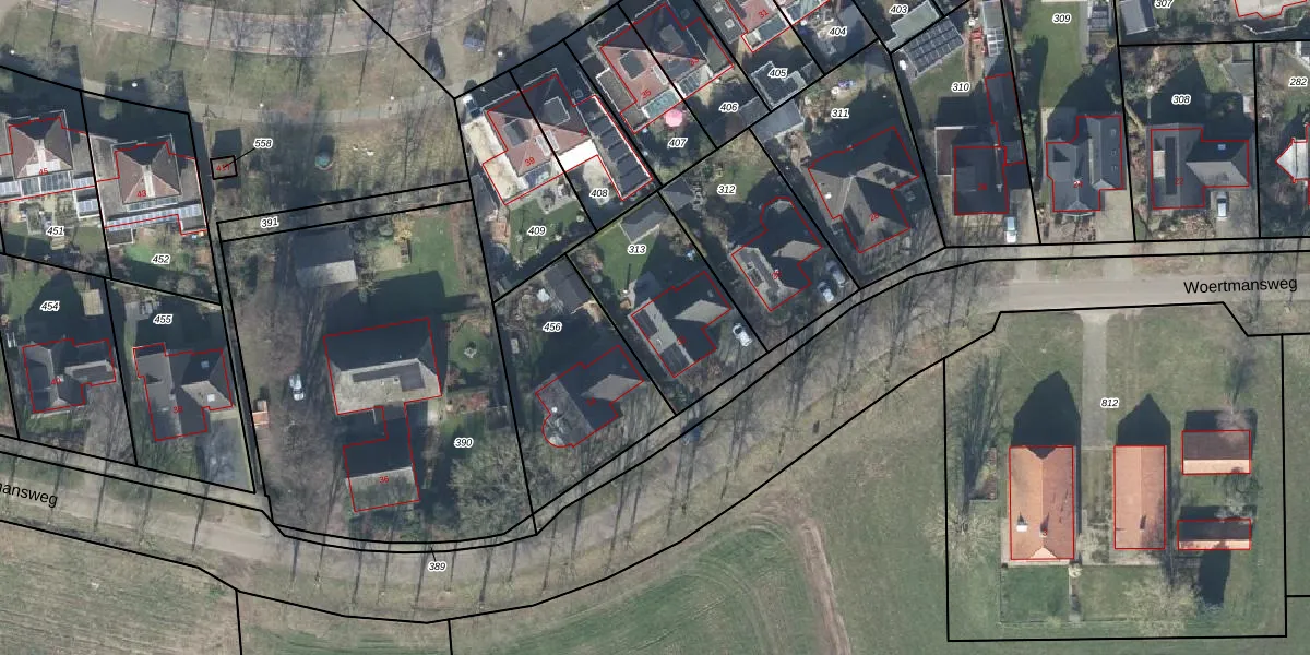 Gebruik de zoekbalk of klik op een perceel voor informatie over de adressen binnen dit perceel.