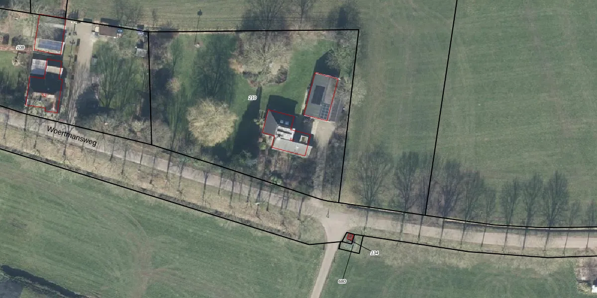 Het perceel waarop Woertmansweg 50 staat heeft een oppervlakte van 3236 m². Dit is een zeer groot perceel. De perceeloppervlakte wordt geregistreerd door het Kadaster. Gedetailleerde informatie over de maten van dit perceel kunt u vinden in het rapport Kadastrale kaart met maatvoering van Woertmansweg 50.