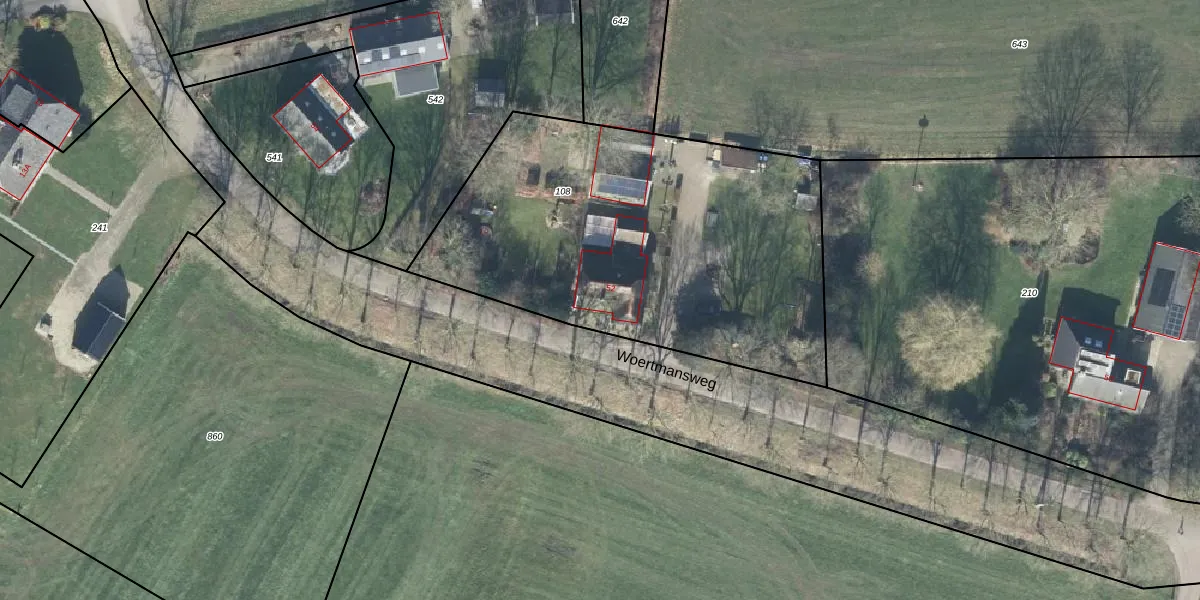 Het perceel waarop Woertmansweg 52 staat heeft een oppervlakte van 2116 m². Dit is een zeer groot perceel. De perceeloppervlakte wordt geregistreerd door het Kadaster. Gedetailleerde informatie over de maten van dit perceel kunt u vinden in het rapport Kadastrale kaart met maatvoering van Woertmansweg 52.