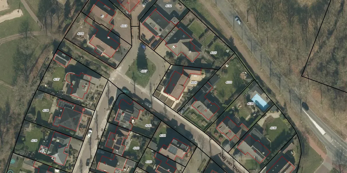 Het perceel waarop Abdij van Thornstraat 19 staat heeft een oppervlakte van 554 m². Dit is een groot perceel. De perceeloppervlakte wordt geregistreerd door het Kadaster. Gedetailleerde informatie over de maten van dit perceel kunt u vinden in het rapport Kadastrale kaart met maatvoering van Abdij van Thornstraat 19.