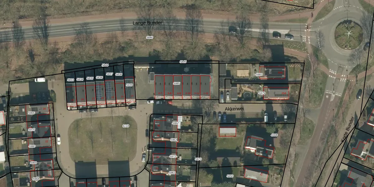 Het perceel waarop Akkerwei 3 staat heeft een oppervlakte van 869 m². Dit is een groot perceel. De perceeloppervlakte wordt geregistreerd door het Kadaster. Gedetailleerde informatie over de maten van dit perceel kunt u vinden in het rapport Kadastrale kaart met maatvoering van Akkerwei 3.