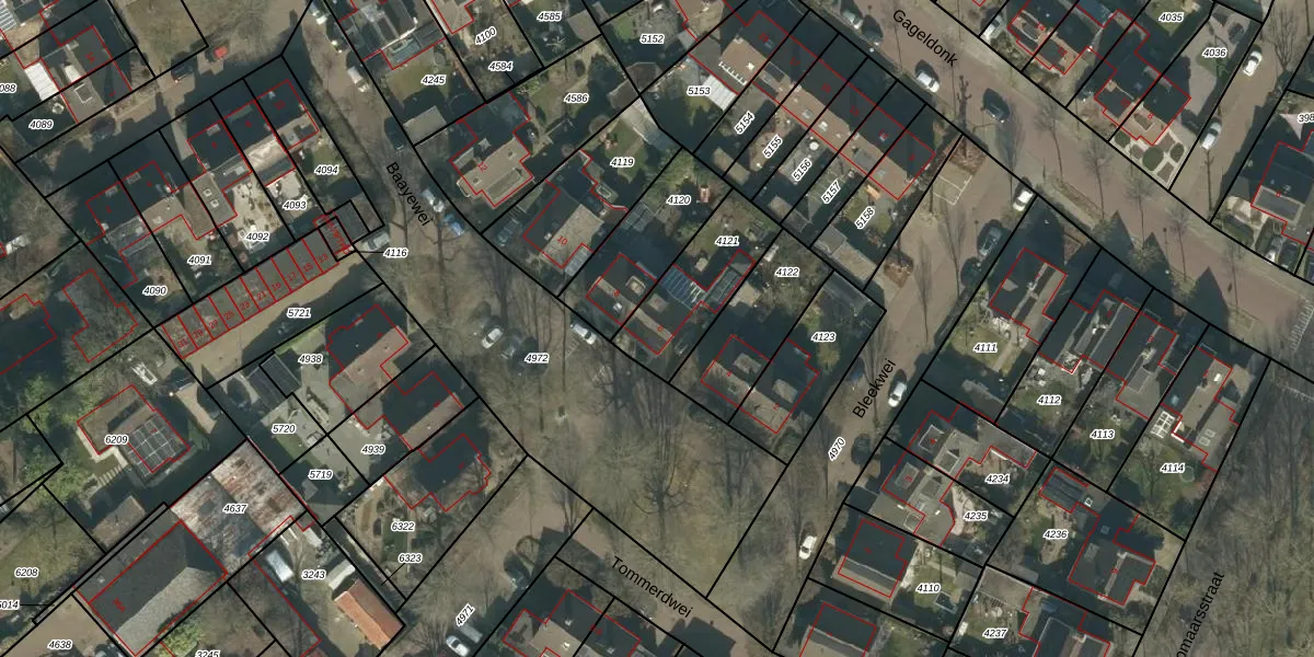 Baayewei 6 is gelegen op kadastraal perceel GNK01K4121. Deze kadastrale aanduiding is uniek en wordt gebruikt door het Kadaster om eigendomsrechten en andere zakelijke rechten vast te leggen. Het perceel maakt onderdeel uit van de kadastrale gemeente Nieuw-Ginneken.