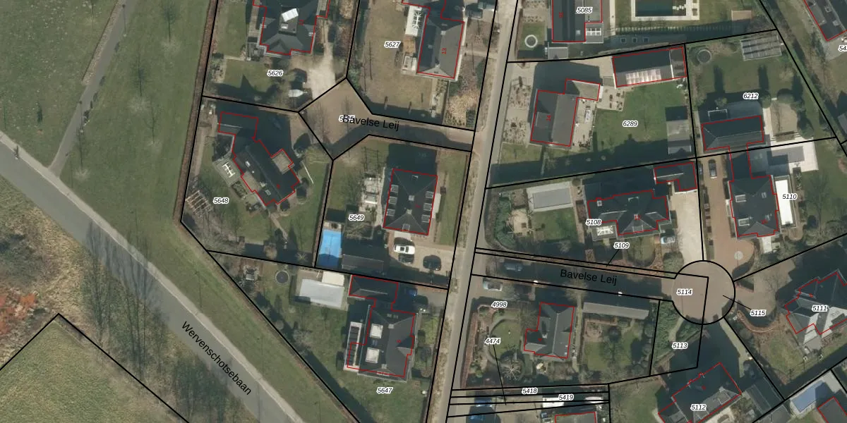 Het perceel waarop Bavelse Leij 7 staat heeft een oppervlakte van 1030 m². Dit is een zeer groot perceel. De perceeloppervlakte wordt geregistreerd door het Kadaster. Gedetailleerde informatie over de maten van dit perceel kunt u vinden in het rapport Kadastrale kaart met maatvoering van Bavelse Leij 7.