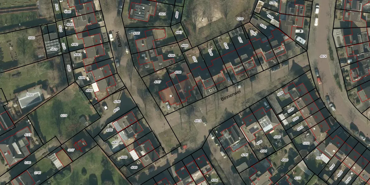 Binnenwei 3 is gelegen op kadastraal perceel GNK01K4098. Deze kadastrale aanduiding is uniek en wordt gebruikt door het Kadaster om eigendomsrechten en andere zakelijke rechten vast te leggen. Het perceel maakt onderdeel uit van de kadastrale gemeente Nieuw-Ginneken.