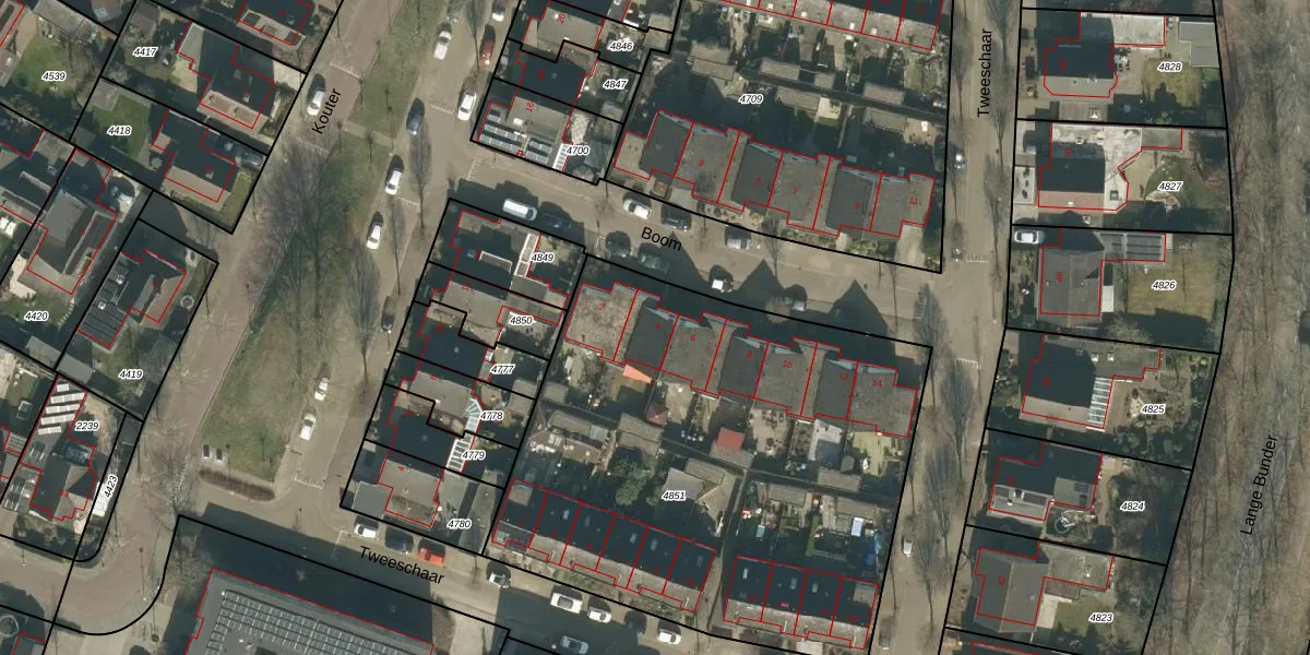 Het perceel waarop Boom 4 staat heeft een oppervlakte van 2850 m². Dit is een zeer groot perceel. De perceeloppervlakte wordt geregistreerd door het Kadaster. Gedetailleerde informatie over de maten van dit perceel kunt u vinden in het rapport Kadastrale kaart met maatvoering van Boom 4.